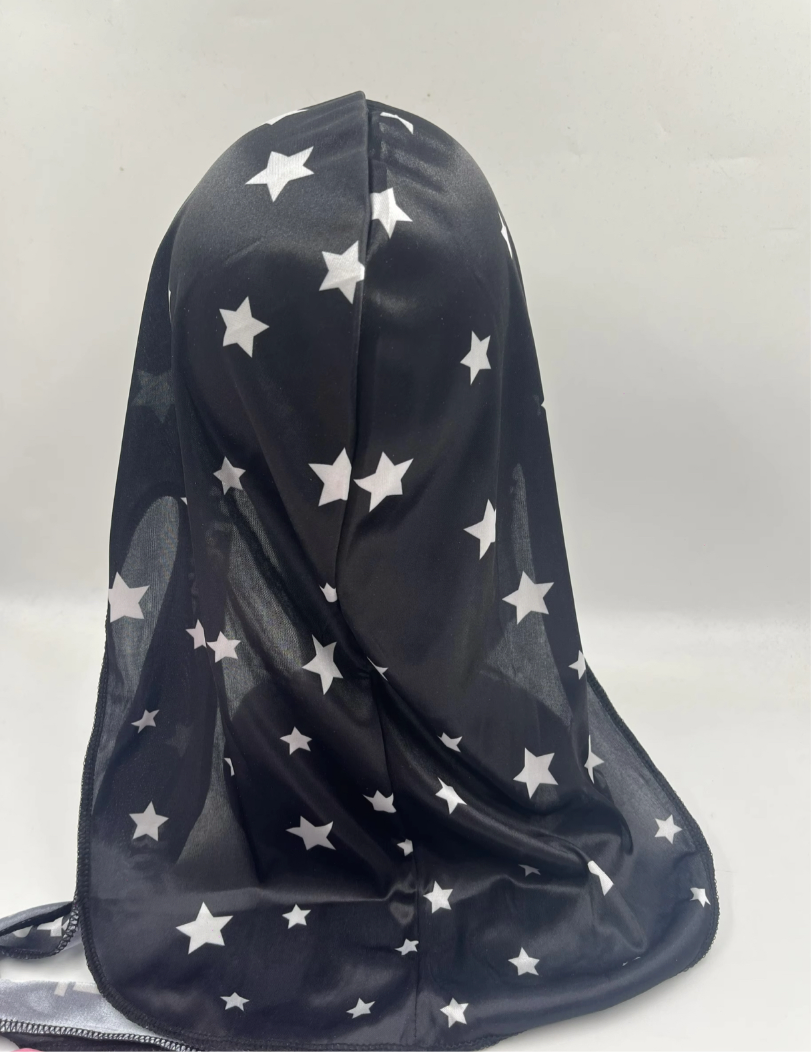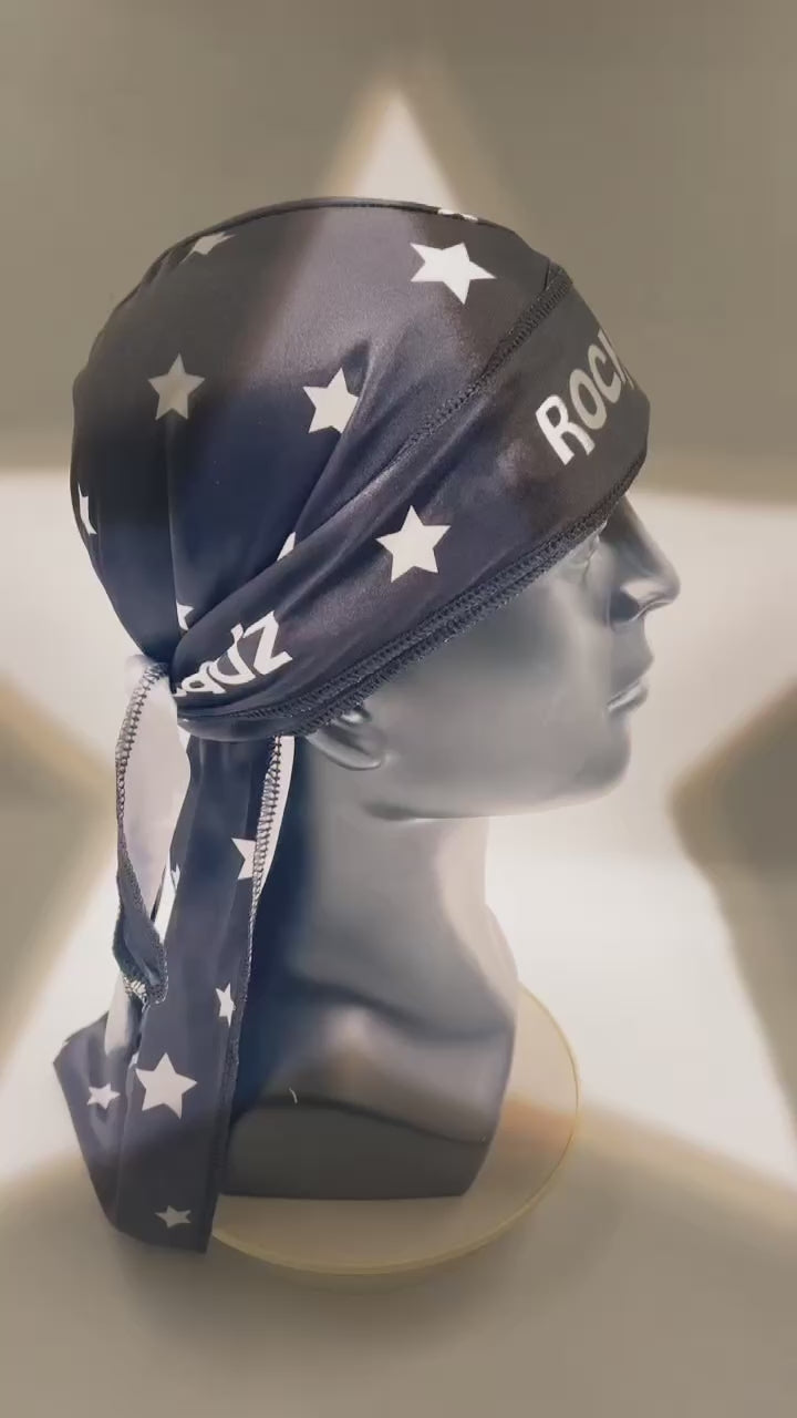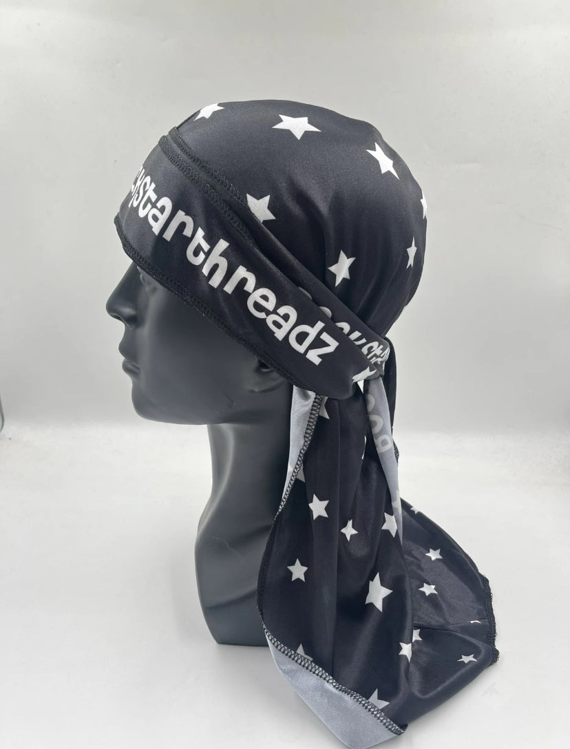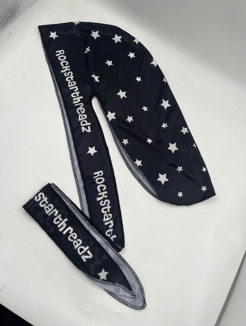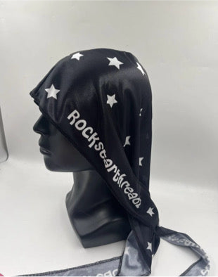 A RockstarThreadz classic. Black silk durag fit for any fit. Whether you’re protecting your crown or making a statement, this durag isn’t just an accessory — it’s an atmosphere.
